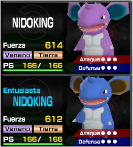 | Entusiasta | En Multijugador, los Pokémon de los otros jugadores se fortalecen. |