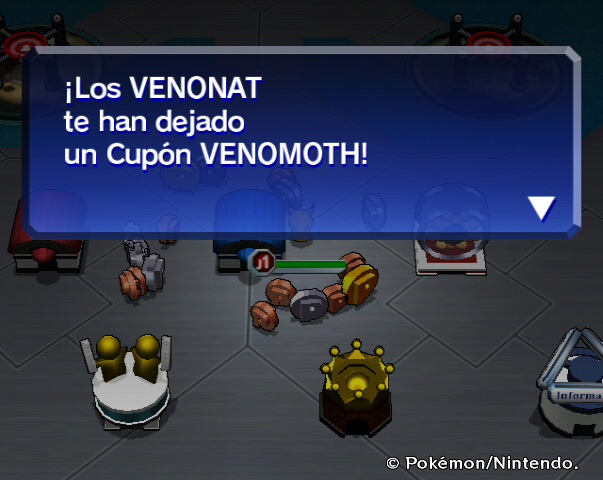 Al dejar 5 Venonat, te obsequian con un Cupón Venomoth. En el edificio de reclutamiento lo podrás cambiar por un magnífico Venomoth.