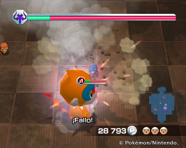 Los muñecos grandes a veces se descontrolan. Empiezan a echar humo, y cualquier ataque que le hagas lo fallas, como en esta imagen.