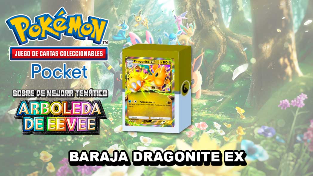 En esta sección les enseñamos la baraja temática de Dragonite ex de la expansión Arboleda de Eevee para Pokémon TCG Pocket o JCC Pokémon Pocket.