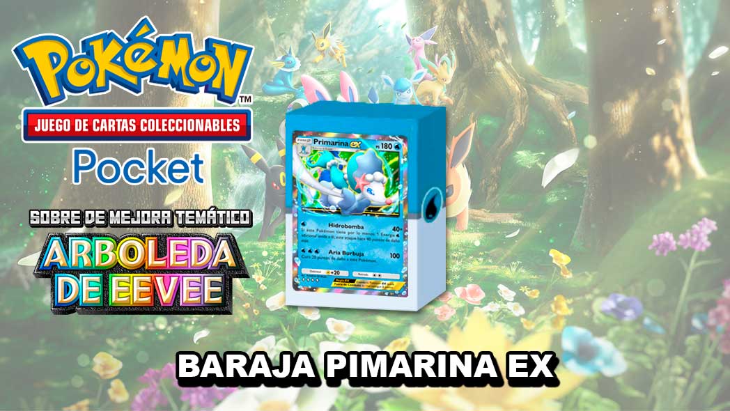 En esta sección les enseñamos la baraja temática de Primarina ex de la expansión Arboleda de Eevee para Pokémon TCG Pocket o JCC Pokémon Pocket.