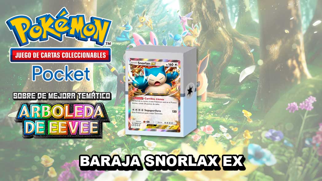 En esta sección les enseñamos la baraja temática de Snorlax ex de la expansión Arboleda de Eevee para Pokémon TCG Pocket o JCC Pokémon Pocket.