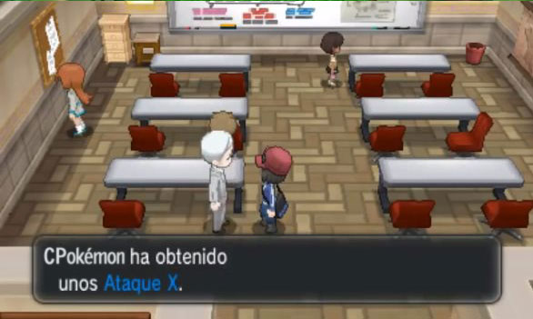 Arriba de todo siguiendo el camino por la fuente, encontraremos la Escuela Pokémon. Dentro hay un señor de cabello blanco que nos dará un Ataque X y un Defensa X. Los demás nos darán algunos consejos básicos de las batallas.
