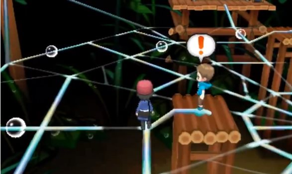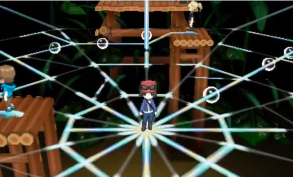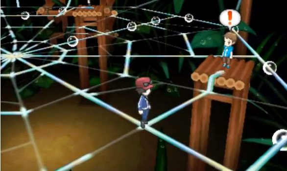 Entrando al Gimnasio de Ciudad Novarte nos deslizamos por la telaraña siguiendo las gotas de agua hasta llegar a los entrenadores. Hay 3 entrenadores y la Líder.