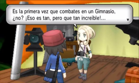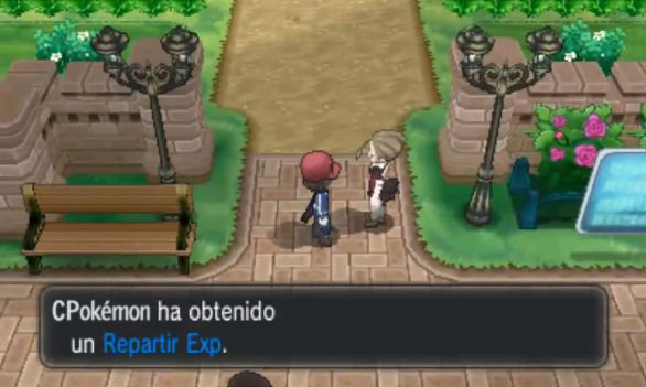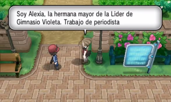 Si volvemos hacia la izquierda y hablamos nuevamente con la hermana de la Líder del gimnasio, nos dirá que se llama Alexia y es una periodista que trabaja en una editorial en Ciudad Luminalia. Además nos entregará el objeto Repartir Exp. que será muy útil para que todos nuestros Pokémon puedan subir de experiencia.