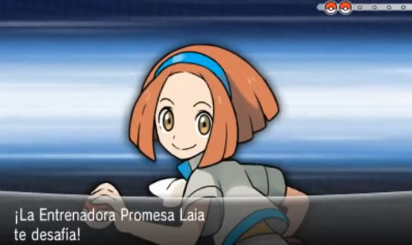 Entrenadora Promesa Laia: tiene un Psyduck Nivel 6 y un Litleo Nivel 7. Recompensa 420P.