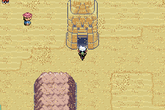 Las Gafas Aislantes/Go-goggles te permitirán ver entre la tormenta de arena. Aquí hay muchos entrenadores, la tumba de uno de los Regis (inaccesible por ahora) y fósiles.