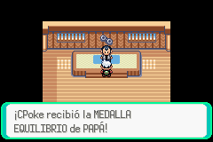 Al vencerlo recibirás la Medalla Equilibrio/Balance Badge, que aumentará la defensa de tus Pokémon y te dejará usar Surf fuera de batalla. Y recibirás la TM 42 Imagen/Facade.