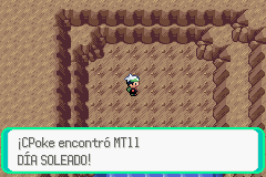 Retoma tu camino por la ruta 120. Si usas Surf y vas hacia el sur de donde está una Nido Ball/Nest Ball, y derrotas al Kecleon que te bloquea el paso, volteando a la derecha antes de pasar el árbol que sirve como base secreta podrás ver una entrada; si te metes estarás en Gruta Solar/Scorched Slab, y encontraras la TM 11 Dia Soleado/Sunny Day.