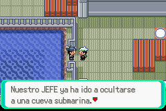 Cuando llegues a donde esta el submarino, te darás cuanta que llegaste tarde y el submarino ya se va con Archie (Sapphire & Emerald) o Maxie (Ruby) dentro, y no podrás detenerlo por ahora.