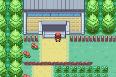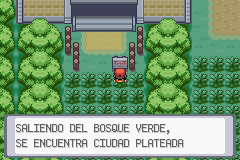 Aquí, sigue avanzado hacia arriba y entra en el edificio ese y sal del otro lado para llegar a Bosque Verde/Viridian Forest.