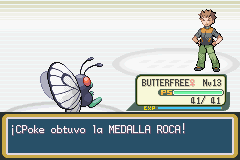 Si tienes a Bulbasaur ó Squirtle, ésta batalla es pan comido. Látigo Cepa/Vine Whip de Bulbasaur y Pistola agua/Water Gun de Squirtle desvastarán los Pokémons de Brock. Con Charmander, la cosa es otro cuento. Para estas alturas Charmander ya debe saber Garra Metal/Metal Claw. Así que primero usa a un buen Pokémon para darle problemas de estado a los Pokémons de Brock, para que así a otro Pokémon como Charmander se le haga más fácil ésta lucha; ten cuidado porque tanto Geodude como Onix, saben usar el movimiento Tumba Rocas/Rock Tomb que en estos momentos puede ser letal para tus Pokémon. Al vencer a Brock el te dará la Medalla Roca/Bowlder Badge, la capacidad de usar Destello/Flash fuera de combate y además te dará la MT39 que contiene Tumba Rocas/Rock Tomb.