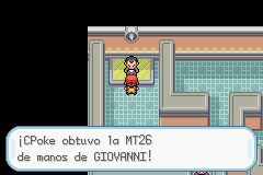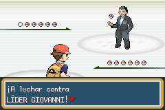 En definitiva lo mejor aquí son los ataques del tipo agua. Su equipo es muy pobre en cuanto a poder, un ejemplo claro de ellos es que no ha evolucionado a su Rhyhorn, aún cuando éste puede evolucionar al nivel 42. Lo único de preocupación con éste líder de gimnasio, es su movimiento más poderoso, Terremoto/Earthquake, que aunque no causa ningún efecto si es muy potente y preciso. Al ganar Giovanni renunciará a su cargo como Jefe del Equipo Rocket y te dará la Medalla Tierra/Earth Badge y la MT26 Terremoto/Earthquake. Usa el Buscobjetos/Itemfinder en éste lugar para poder conseguir la Vestidura/Macho Brace.