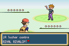 Avanza por el camino pasando por la hierba para encontrarte a tu rival, en el mismo lugar que la segunda vez que encontraste.