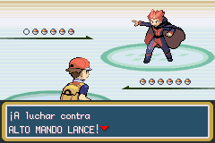 Al ganar avanza por la siguiente puerta y automáticamente avazarás por un corredor que conduce a Lance el último miembro del Alto Mando/Elite Four Pokémon.
