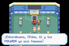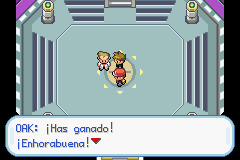 Bien, al vencer a tu rival, llegará el Profesor Oak, quién regañará a tu rival por haber perdido y a ti te llevará al Hall Fama, donde tus Pokémons y tú serán registrados para que siempren puedan ser recordados. Luego verás los créditos al estilo Pokémon Rojo Fuego y Verde Hoja seguidos por una gran palabra Fin.