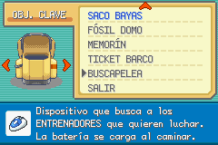 Bueno, ahora sí, ve al Centro POKéMON cúrate si aún no la has hecho y habla con chica de pelo morado de allí y ella te dará el "Buscapelea/VS Seeker". Usa éste objeto para volver a luchar con los entrenadores a los que ya has vencido, úsalo en una zona llena de entrenadores y dependiendo que les haya salido en la cabeza podrás luchar con ellos: