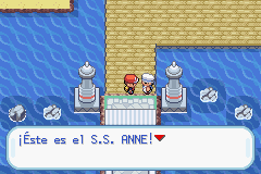 Ve al sur llegarás a la cocina, aquí no habrá entrenadores, pero su inspeccionas la basura del lado derecho hallarás una Baya Meloc/Pecha Berry, en la del medio una Baya Zreza/Cheri Berry y en la de la izquierda una Baya Atania/Chesto Berry. Revisa la basura en la esquina inferior derecha para una Superball. Ahora sube de nuevo y sube las escaleras, ve al sur y sube las otras escaleras, avanza para llegar a la cubierta del crucero en donde hallarás algunos entrenadores, regresa hasta la última escalera que subiste y ve a la derecha entrando en los cuartos y venciendo entrenadores (por aquí hay un tipo que muestra a Snorlax) en esos cuartos puedes conseguir un Tr. Estrella y un Ataque X/X Attack. Cuando hallas visitado todos los cuartos, no avances más, si tus POKéMONs están muy heridos ve donde la chica que te permite descansar para que se recuperen y entonces si, avanza por donde te había y dicho que no lo hicieras y verás como se acerca tu rival y tendrás que luchar con él.