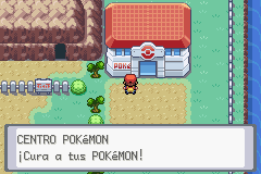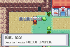 Sigue y baja hasta llegar al Centro POKéMON. Aquí verás a otra entrenadora, prepárate y cuando estés listo entra en el Túnel Roca/Rock Tunnel