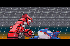 Al llegar a Arrecipolis/Sootopolis encontraras al recién despertado Kyogre luchando contra Groudon (Que había sido despertado por Maxie en el Monte Chimney). La gente los observa curiosa y el clima cambia bruscamente alternándose entre un sol abrasador y una lluvia estruendosa, esto como resultado de la lucha entre los Pokémon Legendarios.