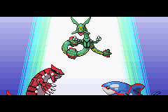 Cuando llegues hasta Arrecípolis/Sootopolis veras a Rayquaza intervenir en la pelea entre Kyogre y Groudon, y un cinema donde los detiene. Kyogre y Groudon escapan en direcciones diferentes y el clima regresa a la normalidad, después de eso Rayquaza regresa a Pilar Celeste/Sky Pilar.