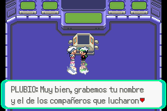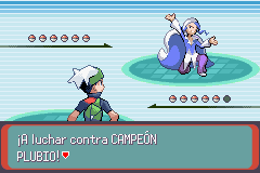 En Cambio, en Emerald el Campeón es Plubio/Wallace. Y usa Pokémon tipo Agua/Water de forma similar a Galano/Juan del Gimnasio de Arrecípolis/Sootopolis. Su equipo es: