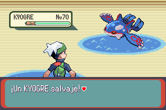 Contra Kyogre sera muy útil un Shedinja, por que Kyogre no podra darle golpes super-efectivos y no lo golpeara. Encontraras a estos Pokémon en nivel 70.