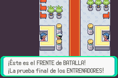 La Frente Batalla/Battle Frontier es un complejo enorme. De hecho la Torre Batalla/Battle Tower también aparece en Emerald... solo como uno de los siete grandes eventos en que podrás participar en la aquí. Es decir, en la aqui se llevan a cabo batallas similares a la Torre Batalla, pero en cada sitio se respetan reglas especificas muy diferentes para poner a prueba diversos aspectos del entrenamiento y las batallas Pokémon.