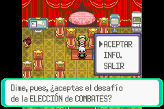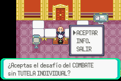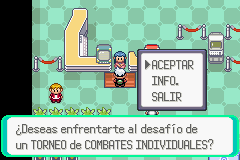 5.- Las batallas serán en tandas de siete en siete. El record de victorias es acumulativo, si pierdes deberás empezar de cero otra vez. Si apagas el GBA sin grabar el juego lo interpretara como una derrota. Después de ganar una batalla tus Pokémon serán curados.