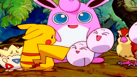 Una tormenta comienza a formarse, obligando a todo Pokémon del lugar a refugiarse. Los rayos que caen provocan un incendio, que es controlado por Squirtle y Marill. El viento sopla cada vez más fuerte, logrando que el nido en el que se encontraba Togepi y los demás Exeggcute se volara, entrando Bulbasaur a atraparlo, ayudado con cadena formada por los demás Pokémon. Cuando la tormenta pas y sale nuevamente el sol,  Pikachu agarra Togepi,  y un Chansey devuelve el último huevo que había estado cuidando. Los Exeggcute comienzan a bailar alrededor de una piedra de la hoja de la alegría, evolucionando en Exeggutor.