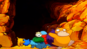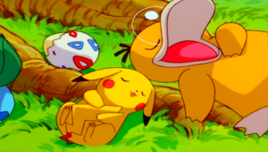 Cuando Ash y sus amigos se detienen para tener un día de camping, Pikachu y sus amigos deciden descansar. Un grupo de Ledyba logra captar la atención de Togepi, provocando que este se despertara, los siguiera, chocara con Meowth y cayeran ambos por un agujero. Un grito de Togepi logra alterar a Pikachu, Pikachu, Squirtle, Bulbasaur, Psyduck, Venonat y Marill (ambos Pokémon de Tracey), los cuales salen en su búsqueda.  comienzan a seguir su rastro, topándose con un enorme agujero oscuro dentro de un árbol. Psyduck llega corriendo y tropieza con los demás Pokémon, provocando que éstos caigan. El tocón los lleva hacia un bosque, donde son rescatados por Ledyba que los atrapan antes de que lleguen al suelo.