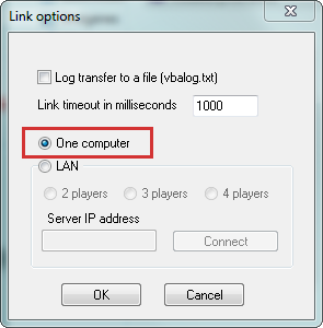 3. Deberás configurar todos los emuladores de la misma manera; accediendo a Options > Link, y marcando «One Computer» (si ya se encuentra marcada, no la desmarques). Se abrirá una ventana diciendo que los cambios realizados se aplicarán luego de cerrar el emulador.foto3