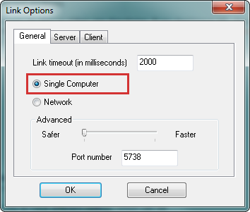 3. Deberás configurar todos los emuladores de la misma manera; accediendo a Options > Link > Settings, y marcando «Single Computer» (si ya se encuentra marcada, no la desmarques).