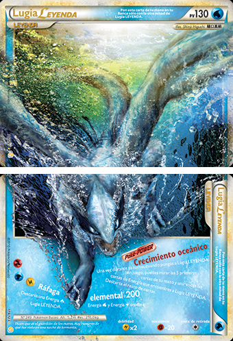 Las dos cartas de Lugia LEGEND. Pokémon-EX (M Pokémon-EX): Mega Pokémon con un aumento de HP y ataques más potentes, que solo pueden evolucionar si se utiliza un Pokémon-EX, lo que acabará el turno.