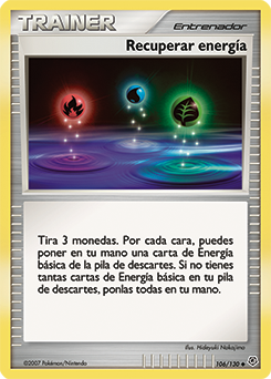 Ciertos Pokémon poseen un ataque que permite tomar una, dos o más cartas de Energía de la pila de Descartes, y unirlas a un Pokémon o agregarlas a la mano. Otras cartas de Entrenador permiten añadir la Energía atada a un Pokémon que fue debilitado en otro que se encuentre en juego, o incluso tomar cierta cantidad de cartas del mazo.